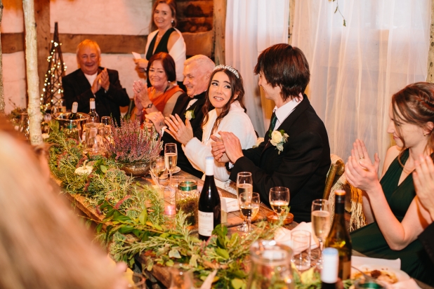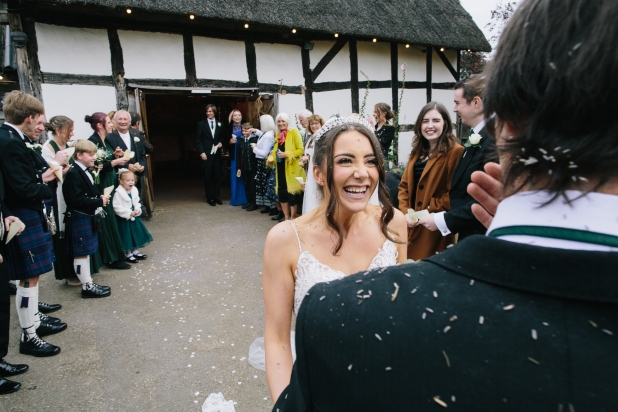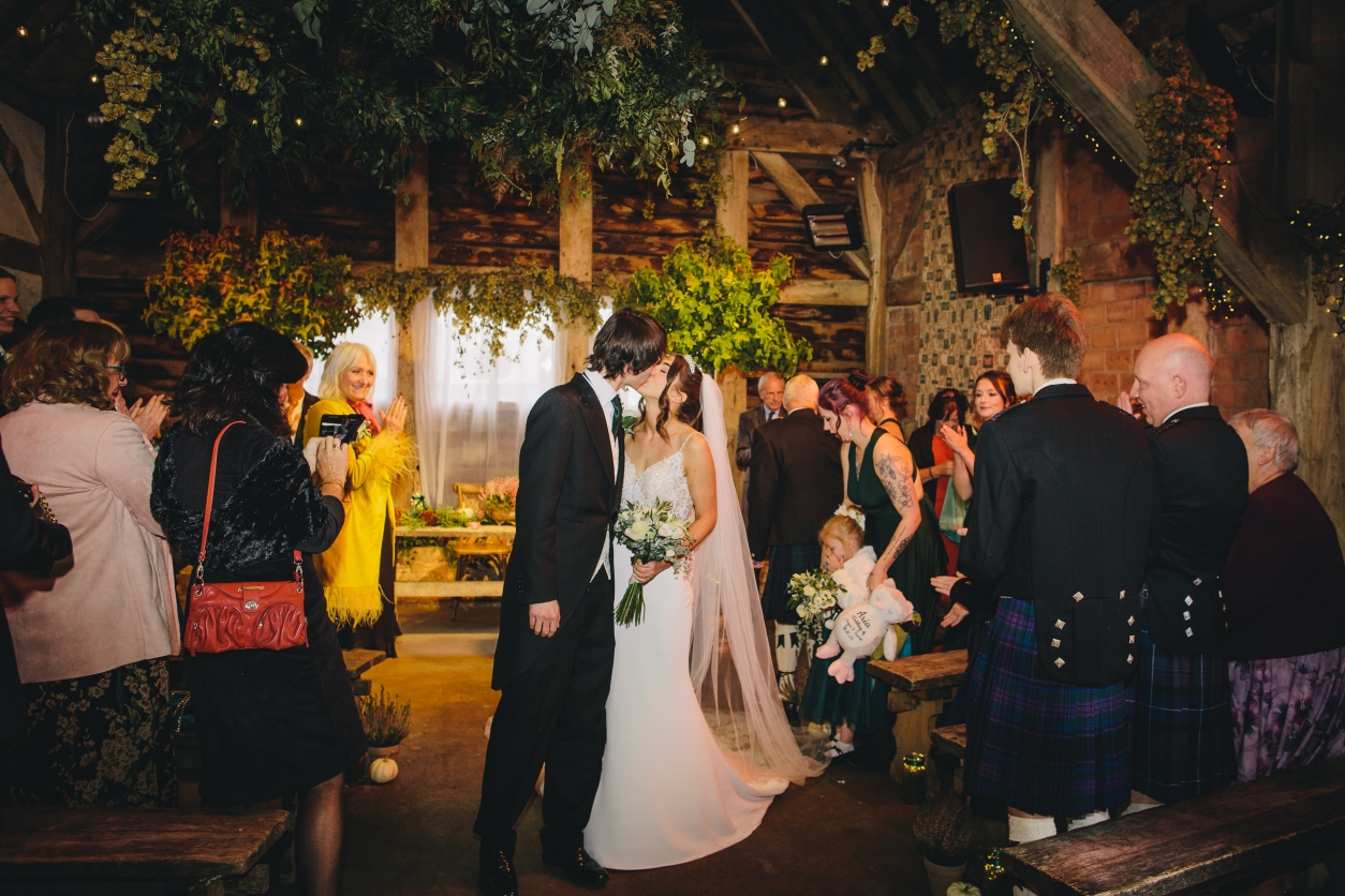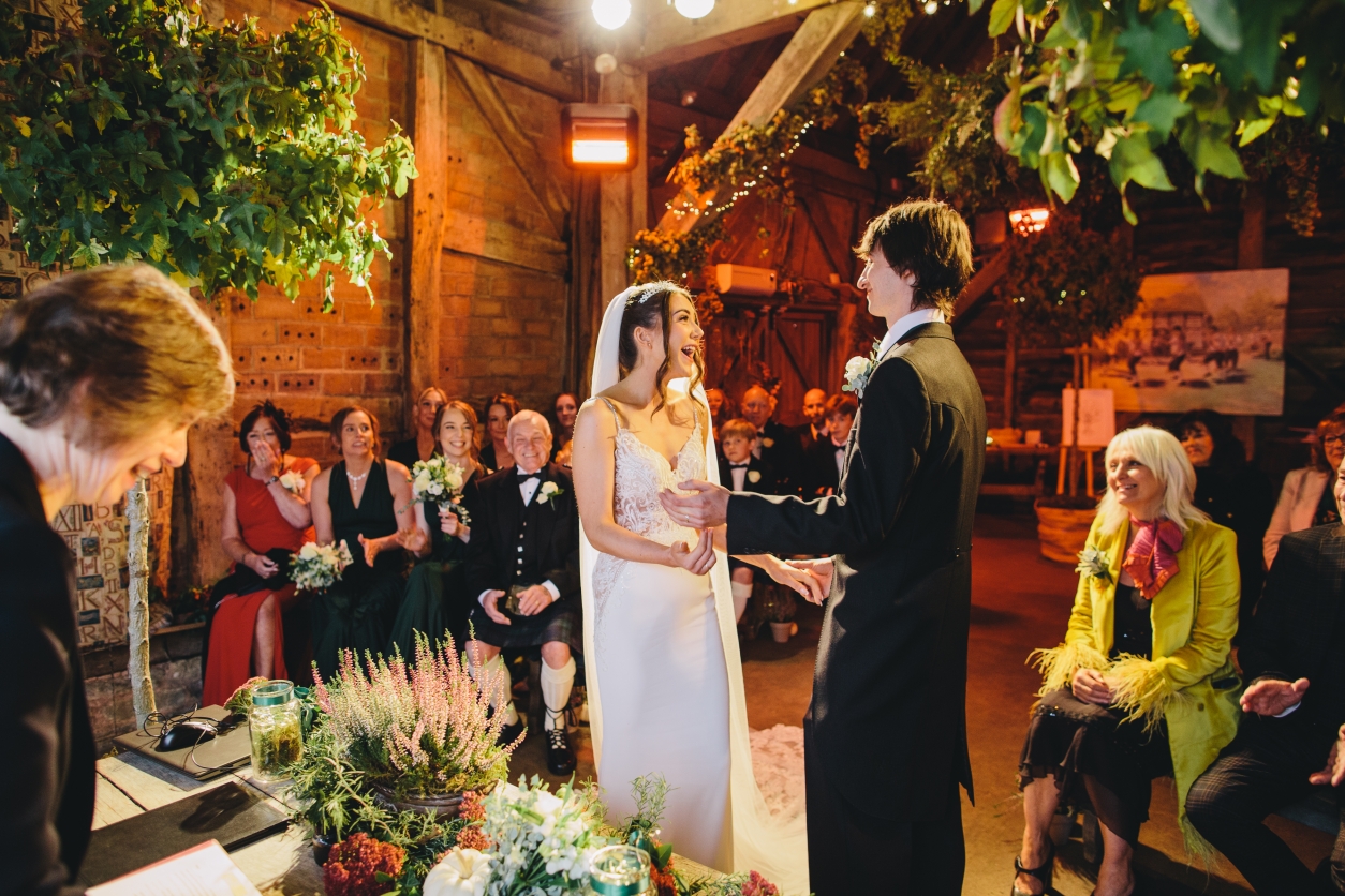 It was a cold October day at the Fleece Inn, Bretforton. Anya and Lucas didnt stop smiling! The Barn looked stunning (and warm!) What a day!!